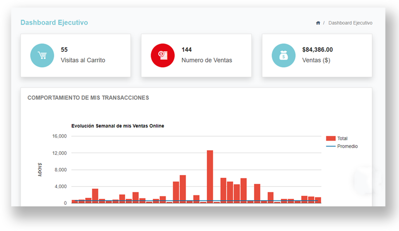Empoderamos a nuestros clientes a través de un sistema de reportes pensados en las necesidades de las empresas para que tengan información en tiempo real que les permita monitorear y tomar decisiones de negocio de manera oportuna con Reportes de Ventas y Costos, Estadísticas de Ventas, KPIs Operativos, Ventas por SKU, Funnel de Compra y Analíticas del Website.