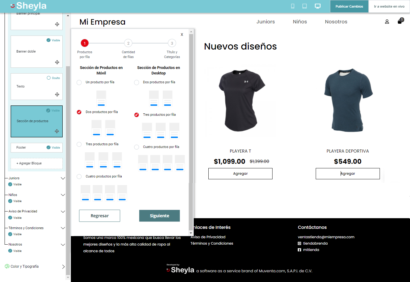 podrás agregar o cambiar bloques de contenido, agregar textos, cambiar colores,